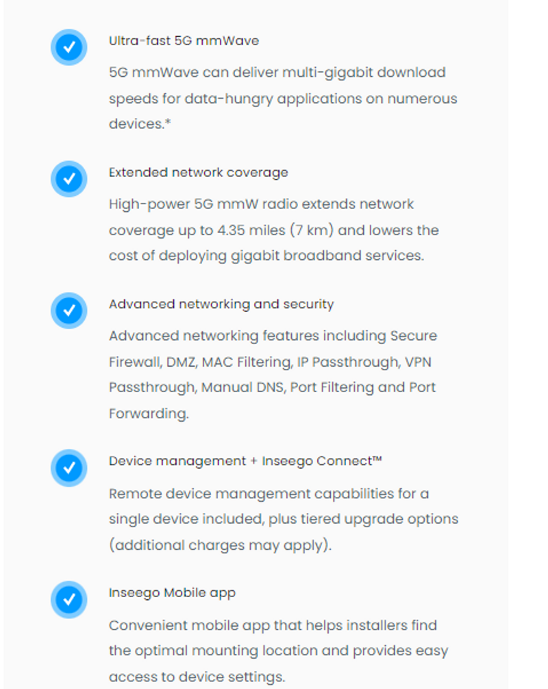 - Easy-to-use Inseego Mobile app to optimize the placement, simplify the installation process, and manage device settings