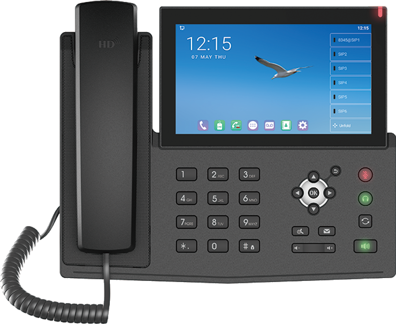 The Communication Hub is a high-end device that combines audio, video, and applications. It runs on the Android® 9.0 system. It features a 7-inch color touchscreen with built-in 4G LTE, Bluetooth 5.0, and 2.4G/5.8G Wi-Fi modules. It also includes integrated USB 2.0 and TYPE-C interfaces. This phone provides a wide range of desktop communication solutions for enterprise-level and SMB users, along with scalable value-added services.